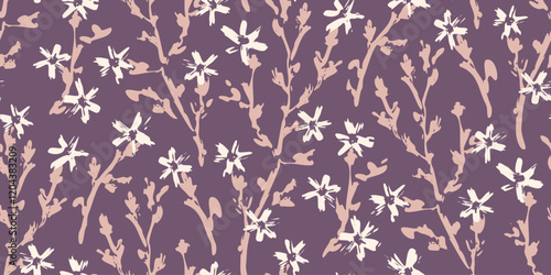 Vintage seamless floral pattern of cherry blossom in retro style. Vector seamless Japanese pattern of sakura flowers.