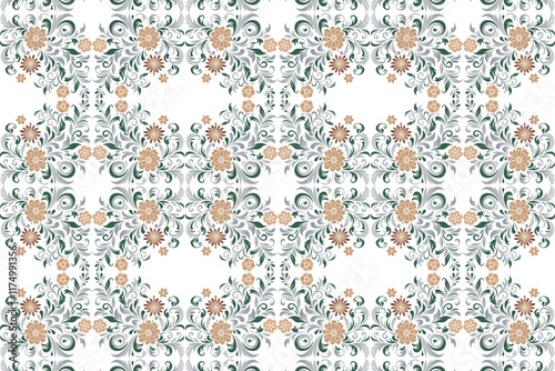 vintage seamless floral pattern with botanical motifs traditional ethnic ikat design for fabric wallpaper and fashion textile all over repeat blossom flower texture