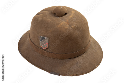 Vintage Second Pattern Wehrmacht Afrika Korps Pith Helmet used by the German Heer, or German Army, in World II isolated on white. Made of felt and wool.