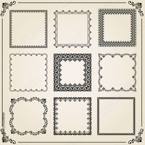 Vintage set of elements. Different vector square elements for decoration and design frames, cards, menus, backgrounds and monograms. Classic patterns. Set of vintage patterns