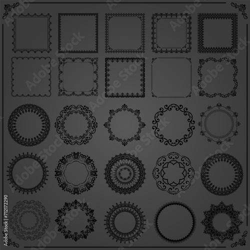 Vintage set of vector black square and round elements. Elements for backgrounds and frames. Classic patterns. Set of vintage patterns