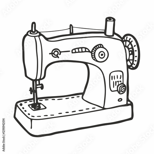 Vintage Sewing Machine Illustration Retro Craft Tool Icon in Black and White
