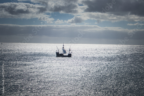 vintage ship at dawn in the ocean