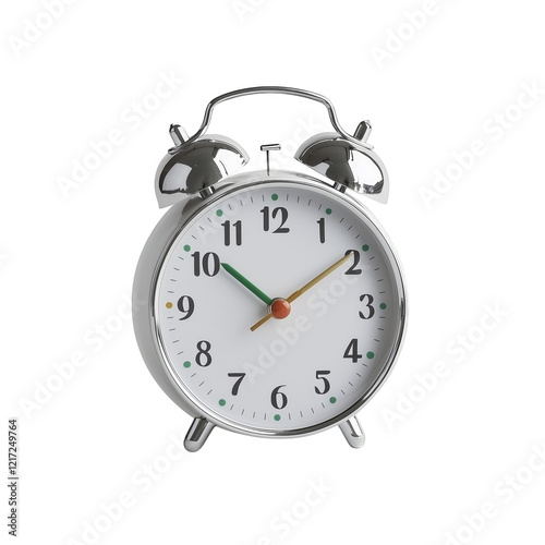 Vintage Silver Alarm Clock with White Face and Red Detail