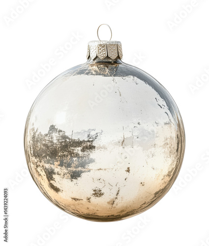 Vintage silver christmas ornament with reflective surface, cut out - stock png.