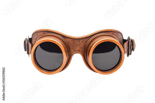 Vintage steampunk goggles with leather strap and dark lenses, cut out