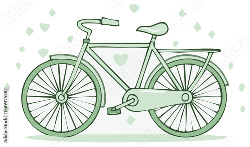 Vintage Style Bike Illustration with Hearts and Diamonds, Cute Vector Design, Light Green Aesthetic, Isolated on Transparent Background