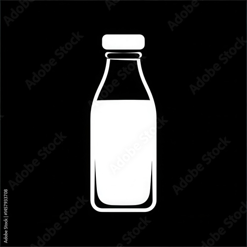 Vintage Style Glass Milk Bottle on Black Background: Minimalist Nutritional Dairy Product Packaging for Healthy Living