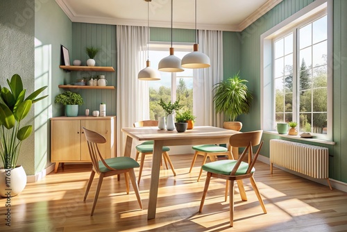 Vintage Style Photo: Bright Minimalist Dining Room with Natural Light