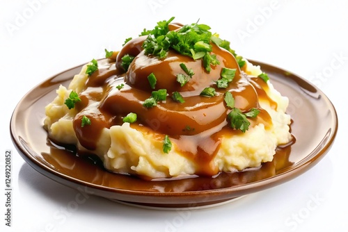 Vintage Style Photo: Creamy Mashed Potatoes with Rich Gravy