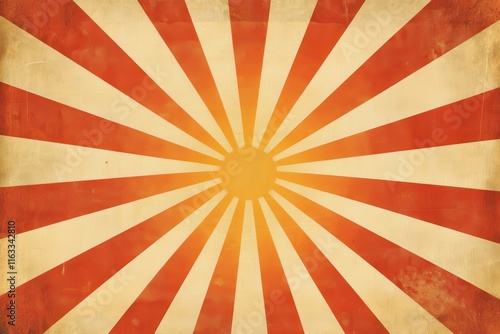 Vintage sunburst design with red and beige stripes. Perfect background for retro designs, posters, or websites.