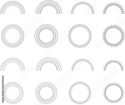 Vintage sunburst set. Bursting rays sunrise firework starburst blast, Radiant Spark. Rays. Geometric Design Elements. Retro radiant sunburst, starburst hand drawn label, sun rays.