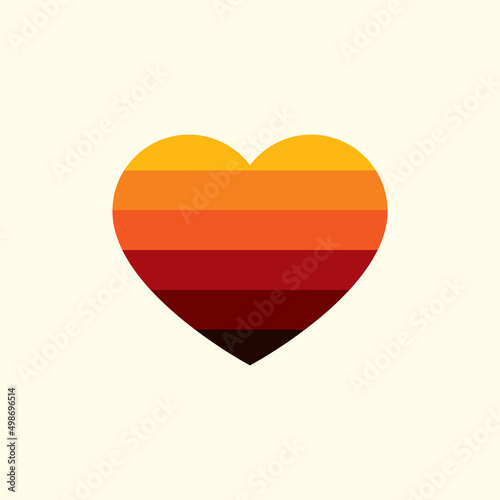 Vintage sunset in the shape of a heart, in the style of the 80s. Vector background. A design element.