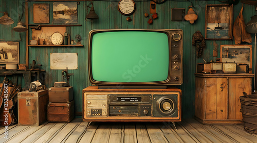 Vintage Television and Radio Sit in Room Decorated with Antique Items and Photos