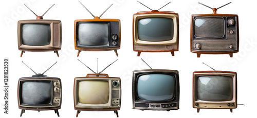 Vintage television sets from different eras isolated on transparent background