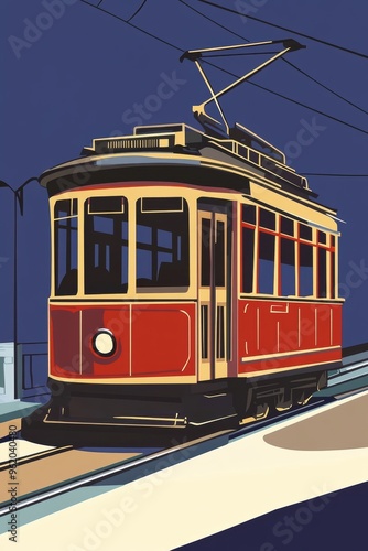 Vintage Tram in Urban Landscape Illustration