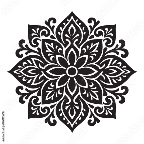 Vintage vector floral ornament design with ornate swirls forms a seamless black lace pattern mandala design