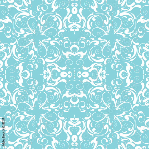 Vintage vector seamless background, blue and white decor