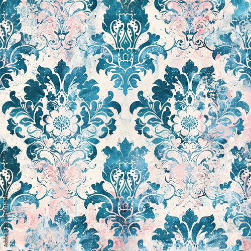 Vintage Wallpaper: Floral Pattern with Distressed Effect