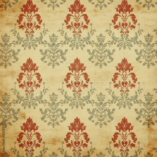 Vintage wallpaper with a floral pattern and red accents