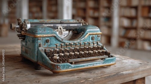 Vintage weathered typewriter with distinctive turquoise keys