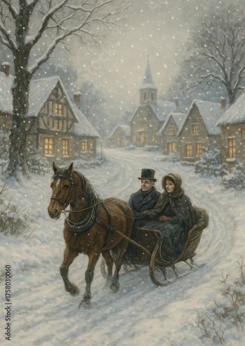 Vintage winter village scene