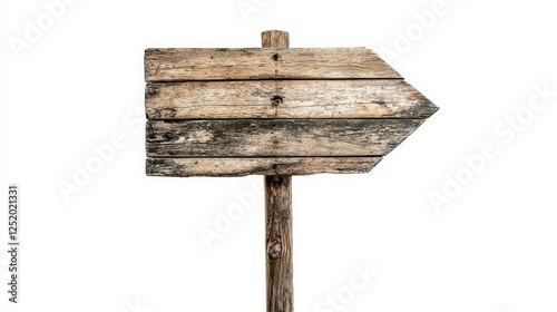 Vintage wooden directional sign with blank arrow-shaped planks isolated on a white background for guiding paths or trails