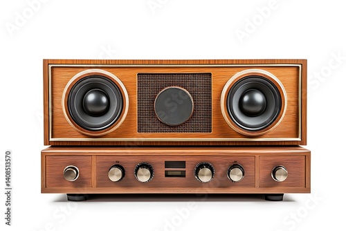 Vintage Wooden Stereo System with Large Speakers and Controls