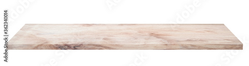 Vintage wooden tabletop or wood shelf isolated on white background. Object with clipping path.