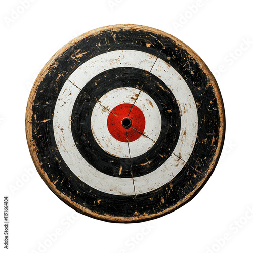 Vintage Wooden Target with Distressed Paint Finish Isolated on transparent background