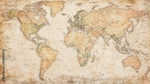 Vintage World Map Antique Geographic Chart Global Exploration