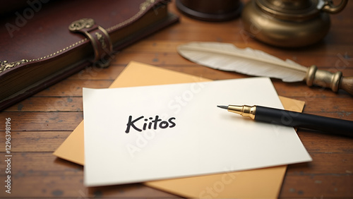 Vintage Writing Scene with Quill Pen and Finnish Thank You Note