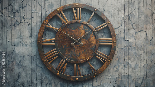 Vintage-inspired wall clock with Roman numerals.Highly detailes , 8K