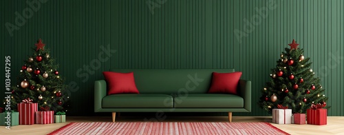 Vintagestyle living room with traditional Christmas decor, nostalgic holiday scene, 3D illustration