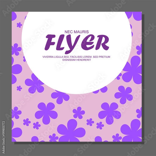 Violet flowers on a flyer. Can be used as greeting cards or wedding invitation.
