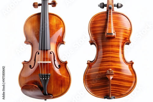 Violin Instrument Cutout: Front & Side Views - High-Resolution Stock Photo