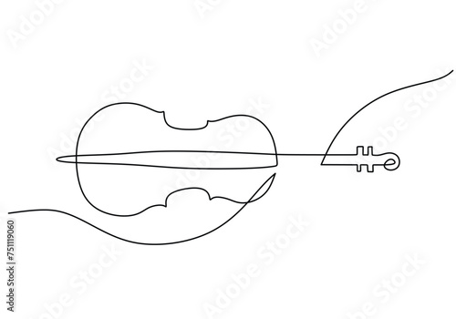 Violin one line art drawing. Music instrument object vector illustration. Hand drawn sketch continuous single outline. Classical string viola for melody playing.