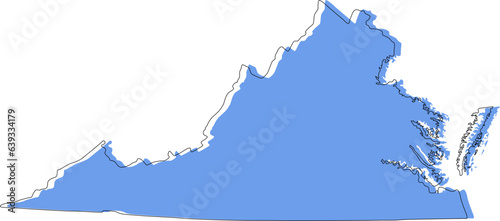 virginia detailed stylized map outline vector, detailed stylized virginia map vector