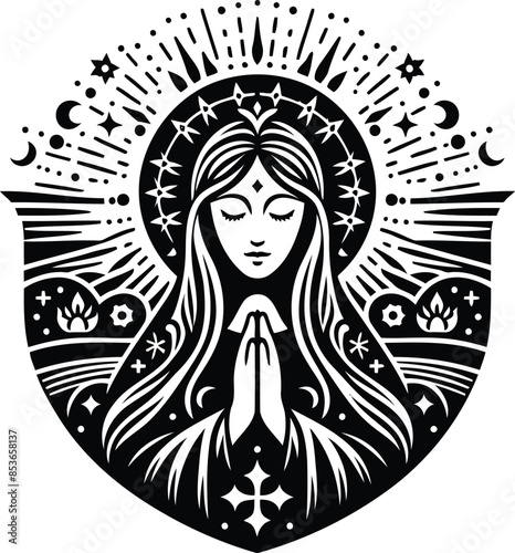 virgin_marry in silhouete with bohemian nature pattern illustration