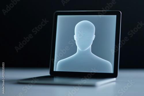 Virtual Conference Call Concepts. Digital silhouette displayed on a laptop screen against a dark background.
