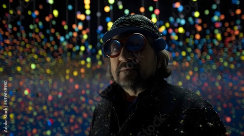 Virtual man people and neural network in VR glasses is a symbiosis of a person and a light structure with many neurons.