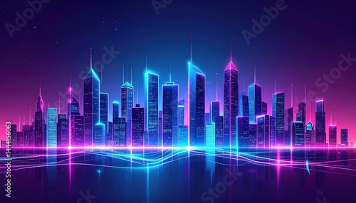 Virtual Reality Metaverse Skyline at Night