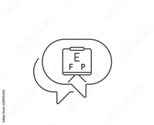Vision board line icon. Chat bubble design. Oculist eye clinic sign. Optometry symbol. Outline concept. Thin line vision board icon. Vector