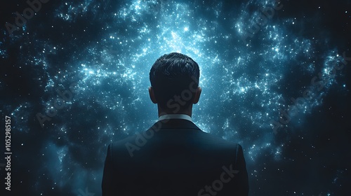 Visionary entrepreneur presenting a holographic business model to investors in a sleek, high-tech conference room