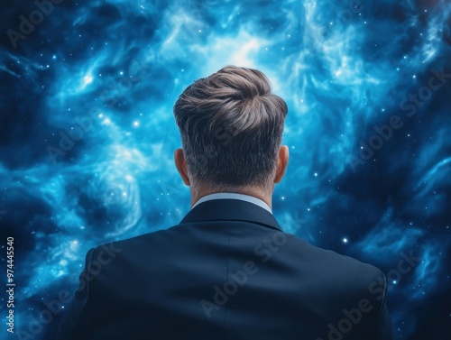 Visionary Leadership Guiding a Team Through Innovation and Transformation, Abstract Visuals of a Leader Looking Towards the Future