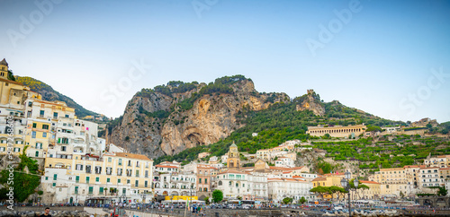 Vista de la costa de Amalfi de Italia durante un día soleado.