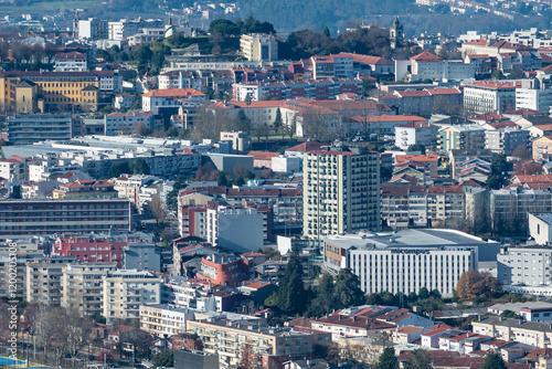 Vista parcial da encantadora cidade de Braga, capturada a partir do icônico Bom Jesus do Monte. A paisagem revela a harmonia entre a arquitetura urbana e o verde das colinas, destacando o charme histó