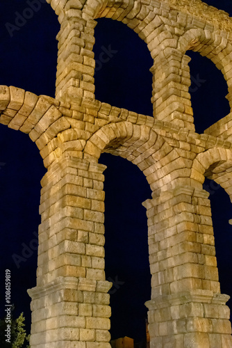 Vistas del Acueducto de Segovia en Castilla y León, España. Patrimonio de la Humanidad por la Unesco