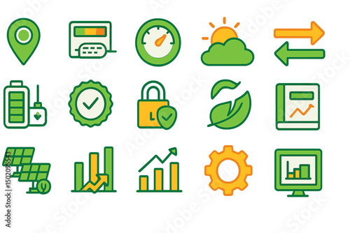 Visual elements representing renewable energy and sustainability practices in modern technology applications