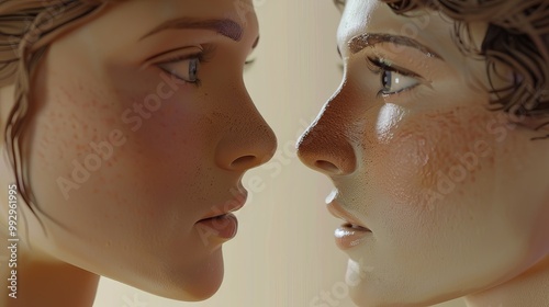 Visual exploration of Levinas' Other, portraying two people in an intimate gaze, evoking empathy and ethical responsibility with symbolic gestures and a deep sense of philosophical inquiry